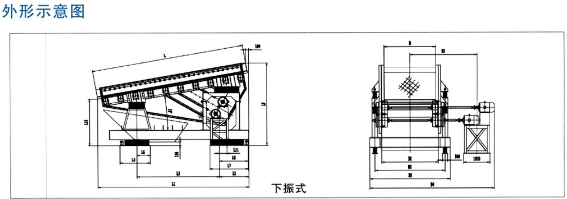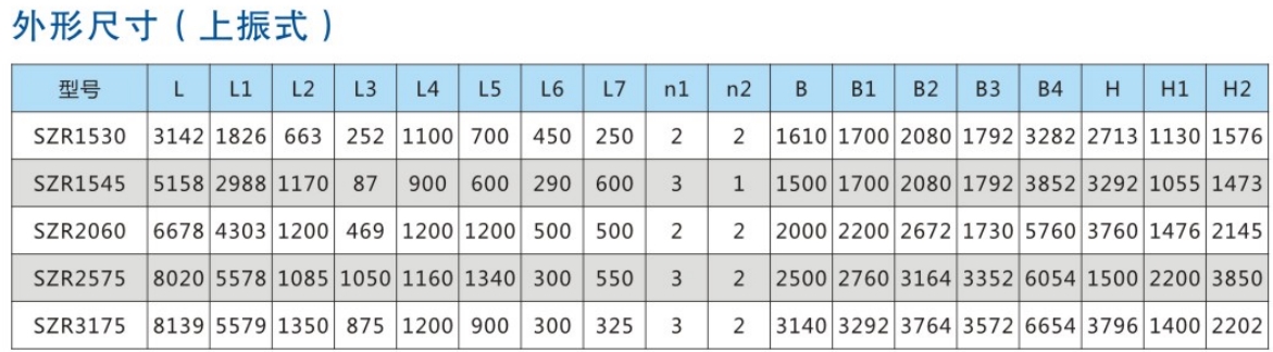 SZR系列熱礦振動(dòng)篩均為座式安裝。采用雙軸激振器,電機(jī)不參振;由兩臺(tái)電機(jī)外拖動(dòng)激振器作反向自同步旋轉(zhuǎn),使篩體沿直線方向作周期性往復(fù)運(yùn)動(dòng),從而達(dá)到篩分目的。