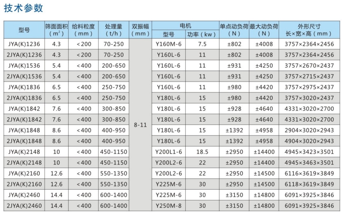 JYA(K)型圓振動篩運動軌跡為圓,主要用于冶金選礦、選煤、建材、電力等行業干式物料的分級作業。該系列圓振篩采用目前國內先進的環槽鉚釘鉚接新工藝。大游隙軸承脂潤滑振動器,具有結構簡單,堅固耐用,噪聲低、安裝、維修方便等優點。